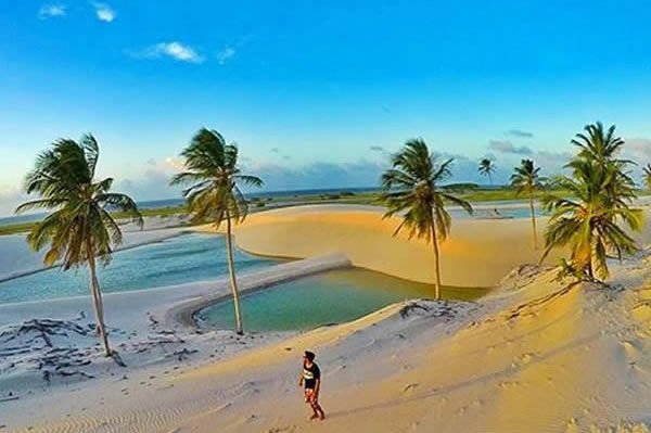 Menos conhecido, mais de grande beleza se destaca pela gastronomia e as fotos nas Dunas da Barrinha com a copa dos coqueiros em cima das dunas! Neste passeio paramos no 1º Buraco Azul, Lagoa da Pinguela e Restaurante Komaki.